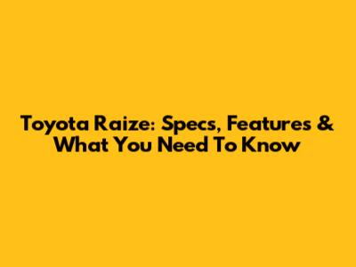 Toyota Raize: Specs, Features & What You Need To Know