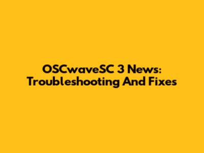 OSCwaveSC 3 News: Troubleshooting And Fixes
