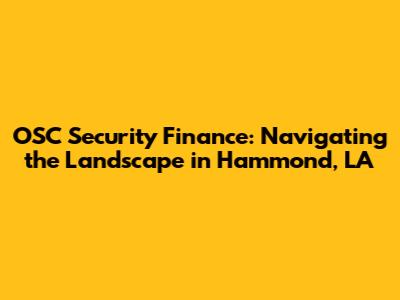 Hey guys! Let's dive into the world of OSC Security Finance in Hammond, LA. Finding the right financial solutions can sometimes feel like navigating a maze, right? But don't worry, we're here to break it down. Whether you're a business owner looking to protect your assets or an individual seeking peace of mind, understanding the financial side of security services is crucial. This article serves as your go-to guide, offering insights, tips, and everything you need to know about OSC Security Finance in Hammond, LA.