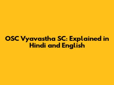 इसलिए, OSC Vyavastha SC का तात्पर्य अनुसूचित जाति के लिए बनाई गई एक विशेष प्रणाली या प्रबंधन तंत्र से है। इसका उद्देश्य अनुसूचित जाति के लोगों के कल्याण, अधिकारों और विकास को सुनिश्चित करना है।