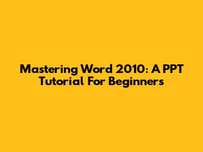 Mastering Word 2010: A PPT Tutorial For Beginners