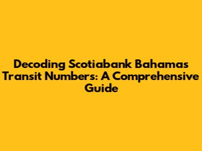 Decoding Scotiabank Bahamas Transit Numbers: A Comprehensive Guide