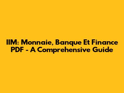 IIM: Monnaie, Banque Et Finance PDF - A Comprehensive Guide