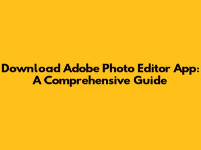 Download Adobe Photo Editor App: A Comprehensive Guide