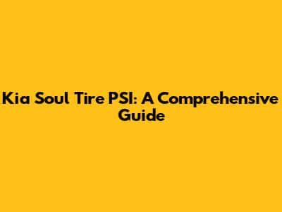Kia Soul Tire PSI: A Comprehensive Guide