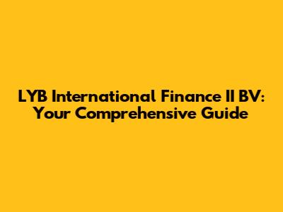 LYB International Finance II BV: Your Comprehensive Guide