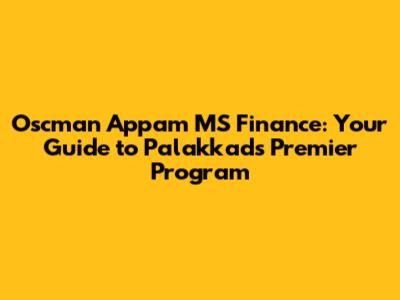 Hey there, finance enthusiasts! Are you guys looking to supercharge your career in the world of finance? Well, if you are, then buckle up because we're diving deep into the Oscman Appam MS Finance program in Palakkad. This isn't just any finance course; it's a launchpad designed to propel you towards success. Whether you are a recent graduate, a working professional looking to upskill, or simply someone fascinated by the intricacies of financial markets, this article is for you. We'll explore everything you need to know, from the program's curriculum and admission process to career prospects and the overall value it brings. Let's get started, shall we?