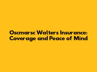 Understanding Oscmarsc Walters Insurance