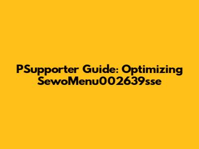 PSupporter Guide: Optimizing SewoMenu002639sse