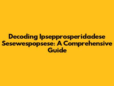 Decoding Ipsepprosperidadese Sesewespopsese: A Comprehensive Guide