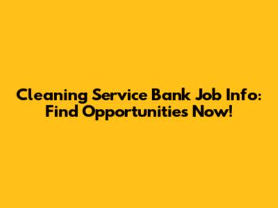 Cleaning Service Bank Job Info: Find Opportunities Now!
