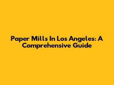 Paper Mills In Los Angeles: A Comprehensive Guide