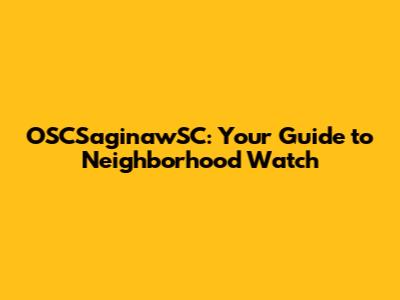 How to Start or Join a Neighborhood Watch in OSCSaginawSC