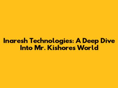 Inaresh Technologies: A Deep Dive Into Mr. Kishore's World