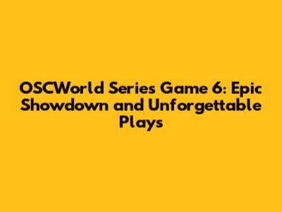 The final moments of OSCWorld Series Game 6 were where legends were made. The tension was almost unbearable, as both teams fought tooth and nail for every inch. These clutch moments were defined by a series of high-stakes plays. The decisive finale saw one team pull off a stunning comeback, showcasing their unwavering determination. The players stepped up, delivering incredible performances under immense pressure. These clutch moments will be remembered as some of the most iconic plays in the history of the OSCWorld Series. These moments of brilliance highlighted the players' skills and mental fortitude. The game came down to the wire, with the outcome hanging in the balance. Ultimately, one team emerged victorious, seizing the championship title in a breathtaking finale.