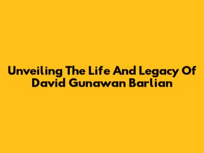 Unveiling The Life And Legacy Of David Gunawan Barlian
