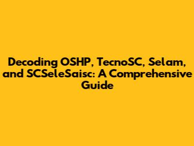 Hey guys! Ever stumbled upon the terms OSHP, TecnoSC, Selam, and SCSeleSaisc and felt a little lost? Don't worry, you're not alone! These acronyms and names might seem like a jumbled mess at first, but we're here to break them down and make things crystal clear. This article is your one-stop guide to understanding what each of these terms represents, their significance, and how they might be relevant to you. We'll dive deep, ensuring you walk away with a solid grasp of each concept. So, buckle up and let's get started on this enlightening journey! Understanding these terms can be super beneficial, especially if you're working in specific industries or just curious about the world around you. We aim to make this as engaging and easy to follow as possible, so you can confidently use this knowledge in your conversations and work. Think of this as your friendly guide to demystifying these potentially confusing terms. Let's jump in and explore the meanings and contexts behind OSHP, TecnoSC, Selam, and SCSeleSaisc.