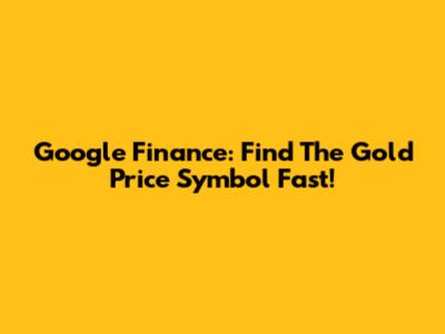 Google Finance: Find The Gold Price Symbol Fast!