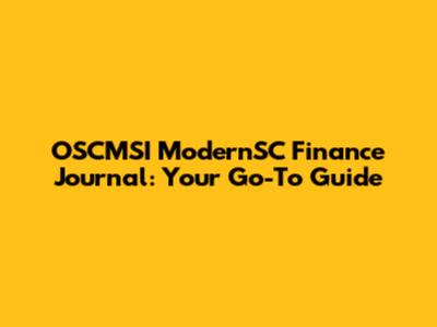 OSCMSI ModernSC Finance Journal: Your Go-To Guide