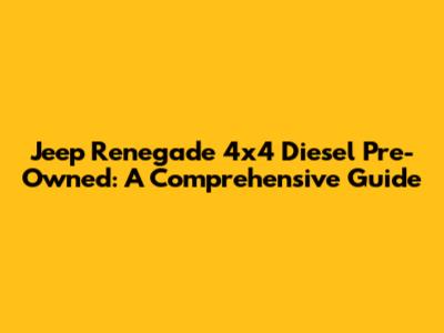 Jeep Renegade 4x4 Diesel Pre-Owned: A Comprehensive Guide