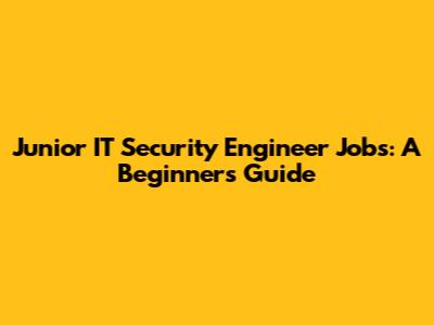Junior IT Security Engineer Jobs: A Beginner's Guide