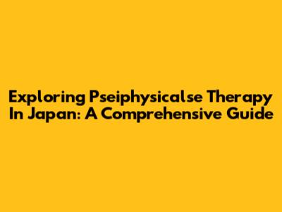 Exploring Pseiphysicalse Therapy In Japan: A Comprehensive Guide
