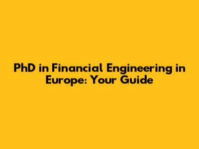 Why Pursue a PhD in Financial Engineering in Europe?