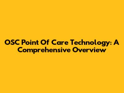 OSC Point Of Care Technology: A Comprehensive Overview