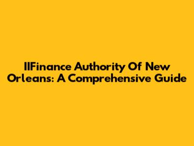 IIFinance Authority Of New Orleans: A Comprehensive Guide