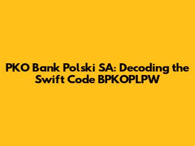 Hey guys, ever found yourself staring at a Swift code and feeling a little lost? Don't sweat it! We've all been there. Today, we're diving deep into the world of PKO Bank Polski SA and its Swift code, BPKOPLPW. Whether you're a seasoned international money mover or just starting out, this guide will break down everything you need to know about this crucial code and how it works.