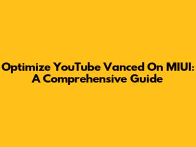 Optimize YouTube Vanced On MIUI: A Comprehensive Guide