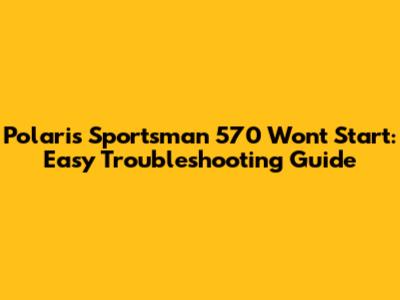 Polaris Sportsman 570 Won't Start: Easy Troubleshooting Guide