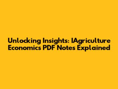 Unlocking Insights: IAgriculture Economics PDF Notes Explained