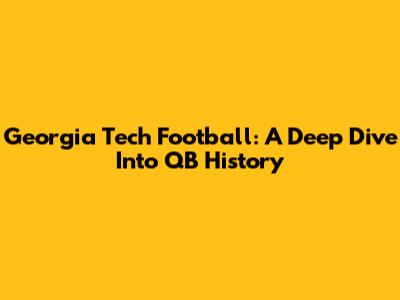 Georgia Tech Football: A Deep Dive Into QB History