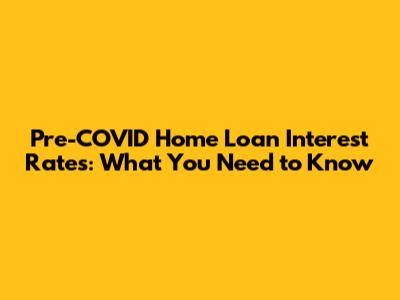 Pre-COVID Home Loan Interest Rates: What You Need To Know