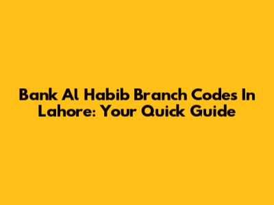 Bank Al Habib Branch Codes In Lahore: Your Quick Guide