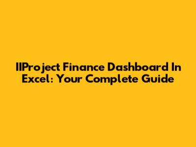IIProject Finance Dashboard In Excel: Your Complete Guide
