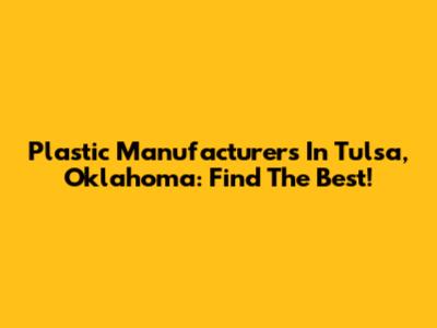 Plastic Manufacturers In Tulsa, Oklahoma: Find The Best!