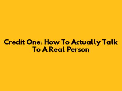 Credit One: How To Actually Talk To A Real Person