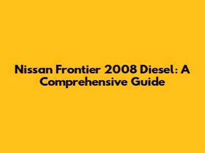 Nissan Frontier 2008 Diesel: A Comprehensive Guide
