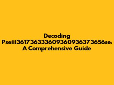 Decoding Pseiii361736333609360936373656se: A Comprehensive Guide