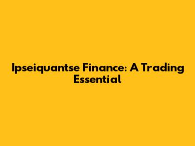 Ipseiquantse Finance: A Trading Essential