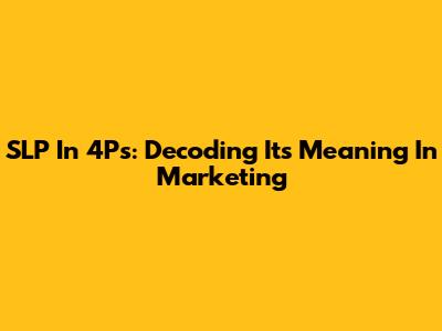 SLP In 4Ps: Decoding Its Meaning In Marketing