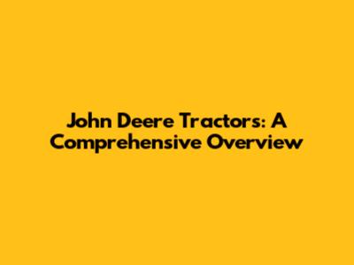 John Deere Tractors: A Comprehensive Overview