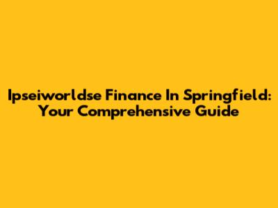 Ipseiworldse Finance In Springfield: Your Comprehensive Guide