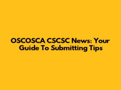 OSCOSCA CSCSC News: Your Guide To Submitting Tips