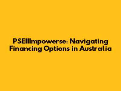 Let's dive into the world of PSEIIImpowerse financing in Australia. If you're scratching your head, wondering what this is all about, don't worry; we'll break it down. Whether you're a budding entrepreneur, a seasoned business owner, or just someone curious about the financial landscape, understanding your financing options is crucial. Australia's financial sector offers a diverse range of opportunities, and PSEIIImpowerse could be the key to unlocking your potential. So, buckle up, and let's explore the ins and outs of PSEIIImpowerse financing down under.