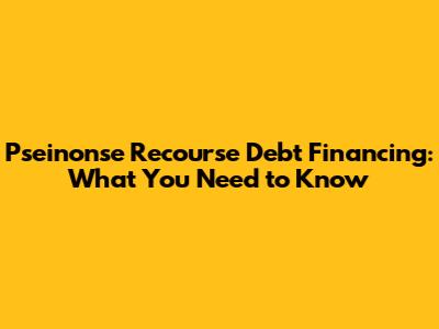Pseinonse recourse debt financing, a specialized form of lending, involves a nuanced understanding of both legal and financial structures. It is essential for borrowers and lenders to grasp its intricacies fully. This type of financing typically appears in complex transactions, often involving significant assets or projects. The term "pseinonse" itself may not be widely recognized in standard financial terminology, suggesting it might be a specific term used within a particular firm, legal framework, or innovative financial product. Understanding the recourse element is critical; it dictates the lender's ability to claim against the borrower's assets beyond those specifically pledged as collateral. This is a significant factor in assessing risk.