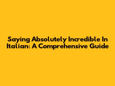 Saying Absolutely Incredible In Italian: A Comprehensive Guide