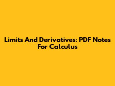 Limits And Derivatives: PDF Notes For Calculus